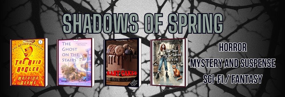 Shadows of Spring: 18 FREE horror stories, including: ‘The Enigmatic Skeleton’, ‘The Doll House Killer’, ‘The Spinster’, ‘The Green Man’ and ‘The Catfish Killer’.